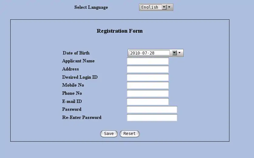 emessage="Error Occurred .. Pls Check the Entered Details" sbutton="Save" cbutton="Reset" e1msg="Wrong Password!Please Re-enter">
