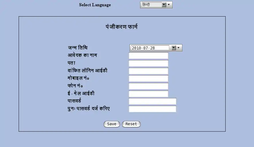 emessage="त्रुटि हुई .. Pls दर्ज विवरण की जाँच करें" sbutton="Save" cbutton="Reset" e1msg="पासवर्ड गलत! फिर से दर्ज करें">