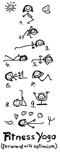 8. Meditation = We rise up in a sitting position (heel seat or cross-legged) and put the hands in our lap (or on the legs). The back is straight and the belly relaxed. We think the mantra "Om Shanti" until our mind comes to rest.