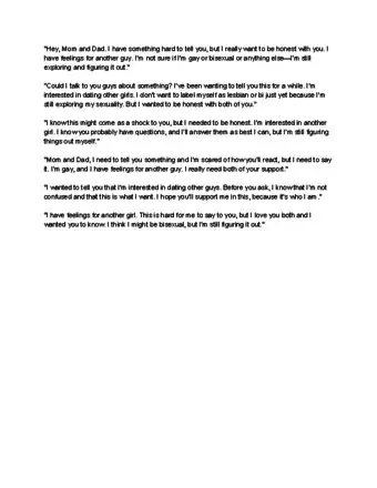 - When you tell your parents, be sure to communicate your feelings with certainty, so they don't assume what you're feeling is just a "phase." Prepare for potential resistance from your parents.