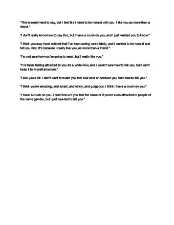 - You might say, “I don’t know how you’re going to react, but I felt I should tell you that I really like you. I think you’re gorgeous and funny, and I’d love for us to get closer.”