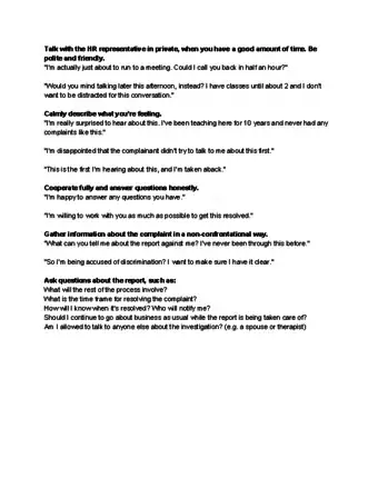 • Depending on the severity of the accusation, you may need to enforce disciplinary action, such as sensitivity training or job probation.