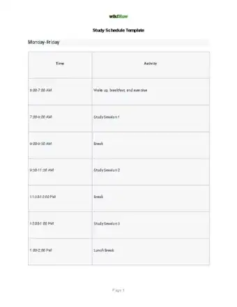 - For example, you might decide to study biology for an hour on Monday night, followed by an hour of English. Then, on Tuesday afternoons, you study Math for two hours.