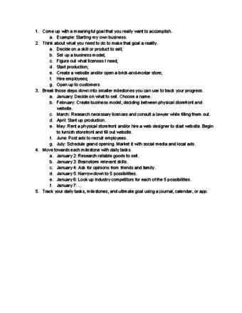 Break the goal down into smaller pieces. Divide the goal by a set of specific tasks that will take a certain amount of time to complete. A 1-hour goal could be broken up into 15-minute segments. Or, divide the task in segments, such as a particular number of files to sort each day.[2]