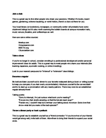 - Consider joining a local sports league, book club, hiking group, or cycling team.