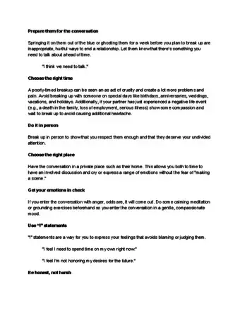 • You may want to send an e-mail or text message to your partner asking to talk prior to getting together. This will give them ample time to emotionally prepare for a serious conversation. You do not want to break up with the person through text, but let them know a serious conversation will happen in the near future.