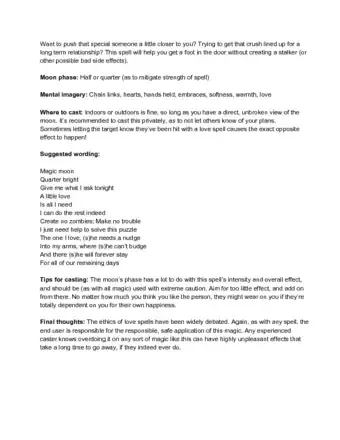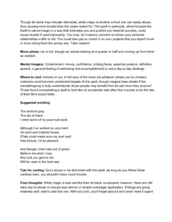 5Chant this spell while facing the moon. Focus on your wish and try to say the spell with reverence and conviction.