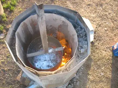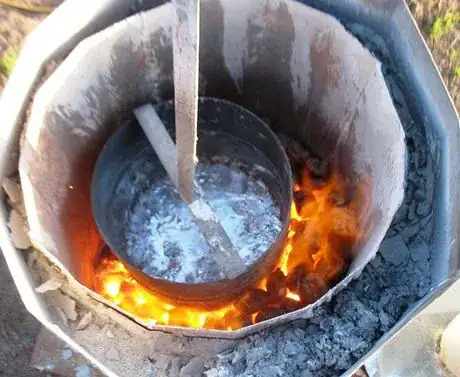1Set up a furnace to melt your aluminum. You can build a simple one using a metal pail, charcoal, and a hair dryer, along with some other commonly available items. If you are adventurous, you can even build a more substantial one, read about it here.