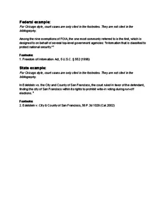 - If you are using Chicago style and your instructor or supervisor wants you to include a listing for statutes in your bibliography as well, use the same format as you would for the footnote.