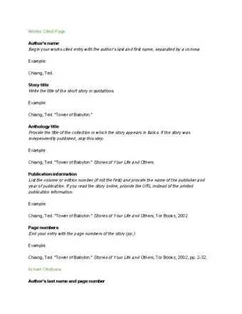 - If you found the short story online, provide the direct URL for the story instead of print publication information.