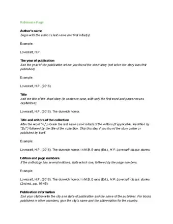 - If you directly quote the short story, include a page number after the year. For example: (Poe, 1996, p. 204).