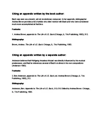 - Single author example: Lane, Lois. Appendix to Serially Saved by Superman: My Work with Clark Kent, pp. 512-514.