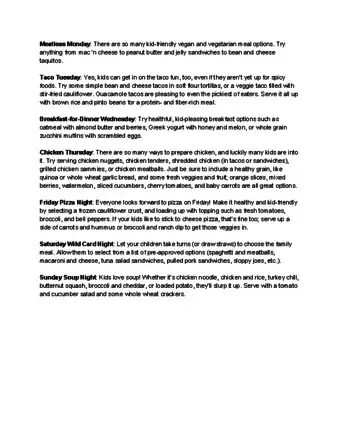 Community AnswerCertainly. 5 points to consider when planning meals: 1) Be sure to address everyone's dietary needs by including a variety of foods from the major food groups. 2) Make sure you can accommodate special diets for vegetarians and vegans, if required. 3) Plan your meals one week in advance to save money and keep to a budget. 4) Use seasonal fruits and vegetables, which is cost-effective and efficient. 5) Make sure you plan meals that you have time to cook. If you work long hours, look for healthy recipes that are quick and easy to prepare. -