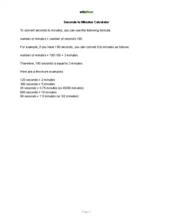 To convert seconds to minutes, divide the number of seconds by 60, since there are 60 seconds in a minute. If you get a decimal in your answer, multiply only the decimal part by 60. For example, if you get 1.6 minutes as an answer, you'd multiply .6 by 60 to get 36 seconds, and your final answer would be 1 minute and 36 seconds. For example problems and ways to check your work, read on!