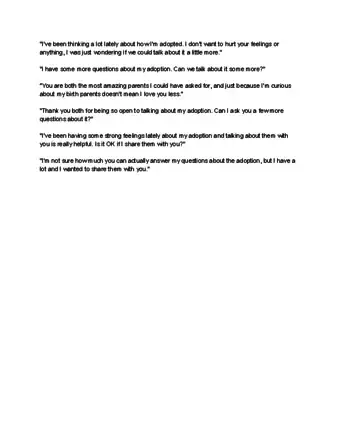• Try telling your adopted parents, "I'm feeling strong emotions about being adopted, but please don't feel hurt that I'm sharing them with you. I want to be honest about my feelings, and talking to you about them is helpful."