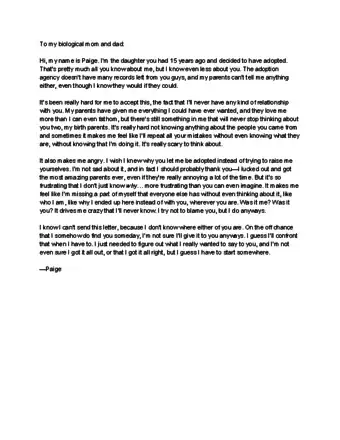 • You don’t need to know who your birth parents are or send the letter to anyone. Writing can help you define and vent your emotions.