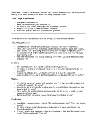 • Start with a simple, “How was your day?” or, “How are you doing?”