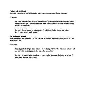 - Alternatively, if you broke a minor rule that does not warrant they take your item, you can calmly point this out and say something like, “I’m sorry for the distraction, I’ll put this away right now and it won’t be an issue again.”