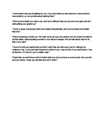• For example, if the teen misses curfew by a few minutes, you might not say anything. However, when they arrive well before curfew, you might say, “I really appreciate you being responsible and making curfew tonight!”