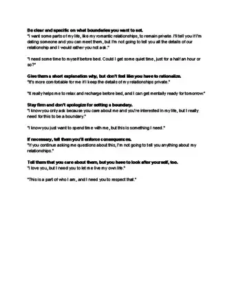 Encourage them to set boundaries. Even in a very intimate relationship, like a romantic partnership or a parent-child relationship, there should be fairly defined boundaries. In a codependent relationship, those boundaries either don't exist or they're very weak, so neither person really has their own separate identity.