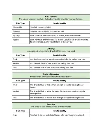 Determining your hair type will help you figure out how to handle, cut and style your hair more effectively. Hair type involves understanding different qualities of your hair, including density, texture, porosity (your hair’s ability to hold moisture), elasticity, and curl pattern. A hair stylist can use your hair type results to recommend the best hair styles, colors, and styling products for your hair.