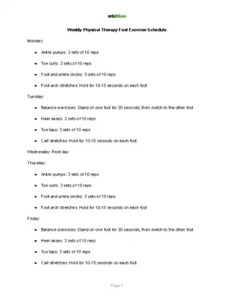 To do physical therapy exercises for your feet, perform toe lifts by sitting in a chair with your feet flat on the floor. Then, lift each toe off the ground in turn, starting with your big toe. You can also do toe curls by placing a towel under your foot on the ground. Next, curl your toes to grip the towel and lift it off the ground. If you want to test your ankle range of motion, stretch out your legs and switch between pointing your toes downwards, sideways, and backwards as far as you can for 10 seconds in each direction. For tips on how to massage your feet, keep reading!