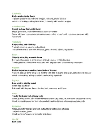 - ↑ https://www.seriouseats.com/2014/09/guide-to-olive-varieties.html