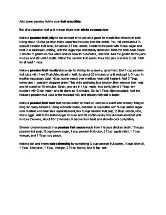 1Try to make passion fruit juice. Passion fruit juice may be what the ancient civilizations referred to when they mentioned ‘the nectar of the gods.’