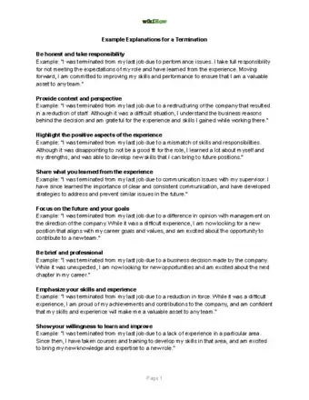 3Don't point the finger. A prospective employer is not likely to believe you if you blame your termination solely on your former employer and don't accept any personal responsibility. Be sure to comment at least somewhat on your own role, even if you just say that you were not the right fit for the company's culture or the specific job.[4]