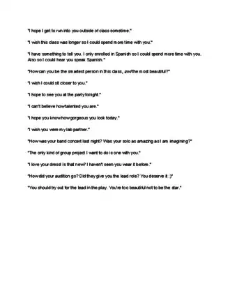 5Lean over and give her a compliment if you're sitting close enough.[4] If you manage to get a seat right next to your crush, quietly give her a compliment during class. The trick to giving a great compliment is to be sincere. Pay attention to what you like about her and compliment that.[5]