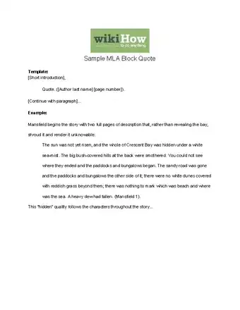 To format a block quote in MLA, start by introducing the quote with a short sentence that ends with a colon or comma. Then, insert the quote on a new line without quotation marks. After you insert the quote, indent the entire block of text so it's 1/2 an inch from the left margin. The block quote should also be double-spaced like the rest of your paper. At the end of the quote, add the author's last name and the page number in parentheses. To learn how to format a block quote in APA and Chicago Style, scroll down!