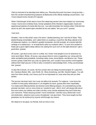 - How long have they been there? If you're 17th of 18th speeches, take that into account!