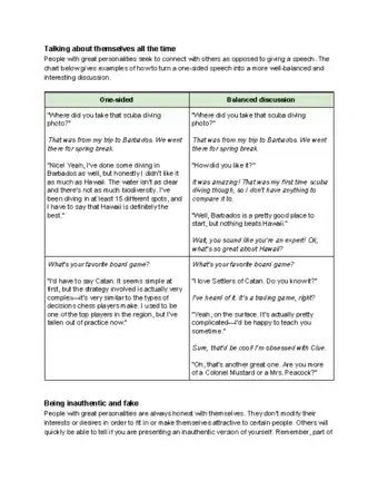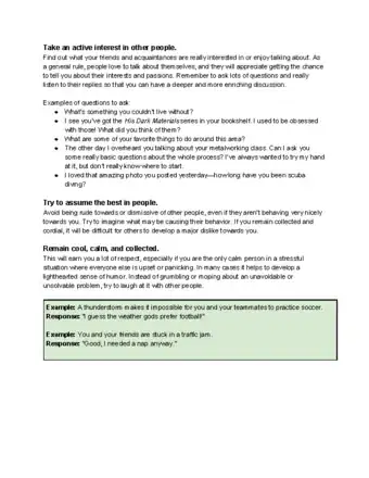 • For example, if you meet someone try to find out what makes them interesting. It doesn't have to be a constant stream of questions but balance talking about your own experiences with what they say. Maybe you really like mountain biking and you notice they have a mountain bike. Don't start talking about how good you are at mountain biking - ask them a lot about what they enjoy.
