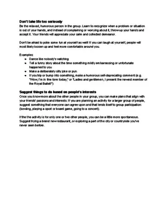 • For example, try to find a way to make people feel comfortable and less tense if something bad happens. If your teacher moves your paper forward a week don't moan and complain - make a joke!