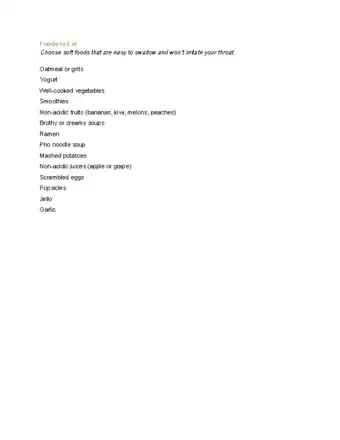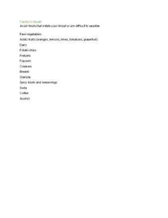 - Try not to eat dry foods, as they can make your throat sore.⧼thumbs_response⧽