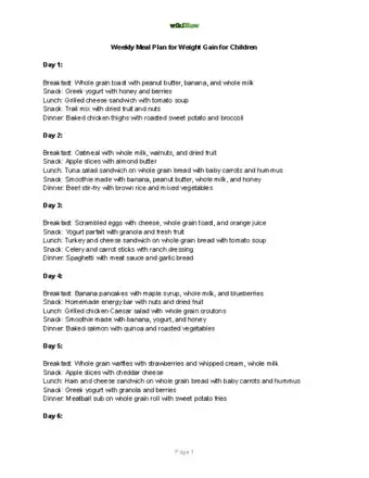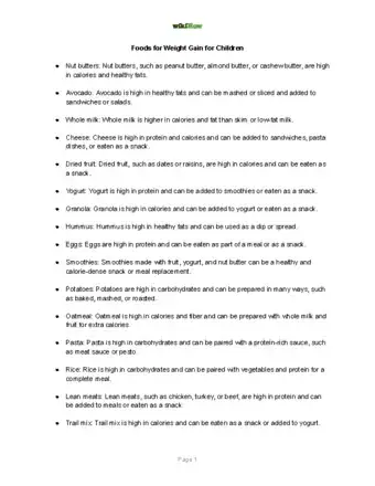 - A high-calorie, high-nutrient diet for weight gain in children should include starchy carbohydrates (pastas, breads, cereals); at least five servings of fruits and vegetables daily; proteins (meat, fish, eggs, beans); and dairy products (milk, cheese, etc.).