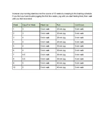 To increase your running stamina, try cross training, such as lifting weights, which will teach your body to use oxygen more efficiently. You can also try intervals on a stationary bike. Just increase the tension on the bike until it's difficult to pedal, stand up, and push hard for half a minute. Then release the tension as you sit down on the bike and catch your breath. These intervals will help you when running hills. Additionally, swimming is a great way to build upper body strength, which many runners lack. To learn more about how to create a training schedule and start a routine, keep reading!