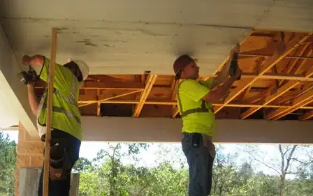 2Determine the framing requirements for the material you choose. Cement board requires support at a maximum of two foot (60cm) spacing, and additional blocking may be required at sheet edges to insure the surfaces are flush after installation. The best results are achieved when blocking is installed at all edge and end joints. Because of the weight of this material, joists or other framing members must be capable of supporting the total weight after installation.Advertisement