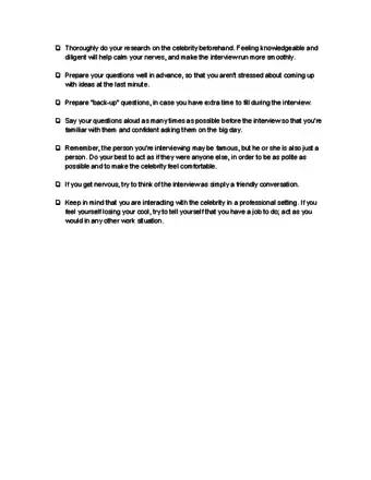 • If the celebrity responds poorly to something, maybe don’t ask them that same question. Also, if the celebrity gets really passionate about something in another interview, consider asking them similar questions.