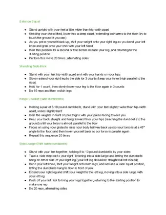 - Repeat 10 to 20 times or as necessary. Make it harder by raising 1 leg and holding your hips at an even level during the minute. Repeat with the opposite leg.