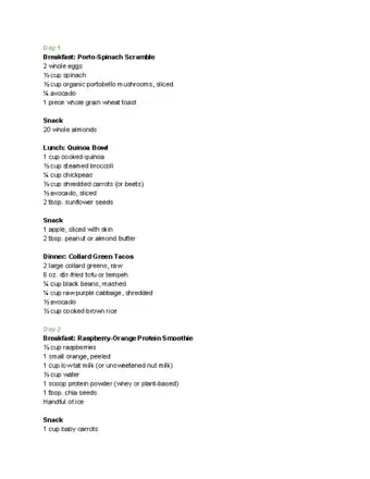 - Include 1 serving of protein and 2 servings of a fruit or vegetable at each meal.[8] [9] [10] It's recommended to consume about 2 to 3 servings of grains throughout the day.