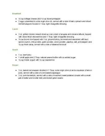 - Write out your breakfast, lunch, dinner and snack options for a week at a time. Note if you'll need to have a day of meal prep set aside to help make meals quicker.