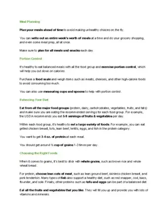 1Write up meal plans. When you're trying to change your diet and eat more healthfully, planning out your meals can be helpful.
