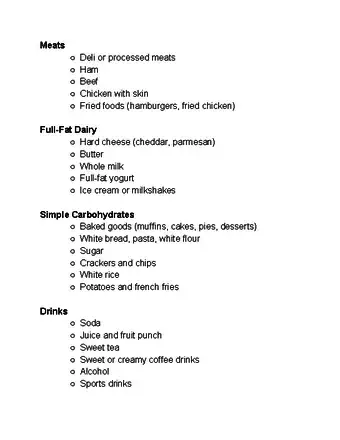 - Don't fall into the trap of the low-carb Atkins diet. This diet recommends that you eat high-protein meats and fish that are high in saturated fat and cholesterol. Consuming too much animal protein (eggs, butter, chicken, fish, yogurt, milk, beef, lamb, pork, turkey etc.) have been linked to increased rates of heart disease and cancer.