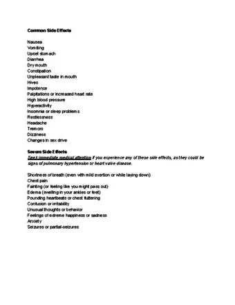6Be on the lookout for side effects. It is important that phentermine patients be aware of side effects. Pay attention to your body as you take the drug, and notify your doctor of any sudden changes that you notice. While some side effects are only minor and inconvenient, other side effects are dangerous and require immediate medical attention.[18]