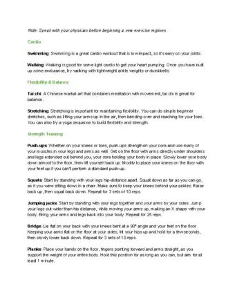 It can be hard to make time to care for your body, but if you take small steps to eat well and follow a healthy lifestyle, it will feel a lot easier to maintain your health. Try to eat several servings of fruits and veggies each day, as well as lean protein, and whole grains. It may be hard, but try to cut out fast food and junk food as much as possible, since these foods aren't super nutritious. Exercise at least a few times a week to keep your blood pressure low and your heart healthy. It’s also important to cut out things like smoking and binge drinking, which can deteriorate your health. Make sure to go to your doctor for regular check-ups even if you aren’t experiencing any symptoms. They’ll be able to make sure you’re healthy and on the right track to staying that way. To learn how to exercise your mind, read on!