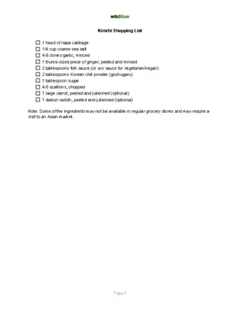 Kimchi Shopping List and Recipe