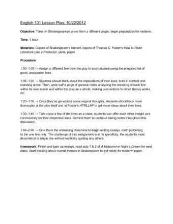 - For example, if your class is about Shakespeare's Hamlet, your overview might be “Introduction to Hamlet. Historical context, biographical info, and preliminary information. We’ll cover the folio, character list, and assign reading roles. Start Act 1 if time allows.”