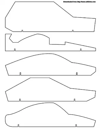 1Design your car. Sketch on a piece of paper the size of your block of wood. Some ideas are above, but pretty much any shape will do.