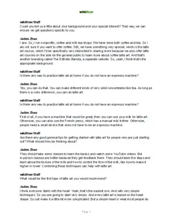This article was co-authored by Jaden Zhao. Jaden Zhao is a Barista and the Owner of Jiaren Cafe & Yoga Studio in Santa Clara, California. Her cafe specializes in matcha drinks, espresso, coffee, fruit drinks, and herbal drinks. Additionally, the cafe hosts classes and features a yoga studio and a community space. Jaden earned an MS from Santa Clara University Leavey School of Business and a BA from the University of Wisconsin-Madison. This article has been viewed 35,219 times.